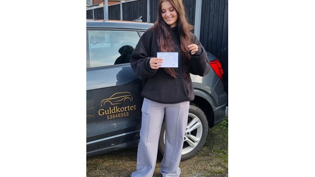 Ida fik sit kørekort hos Guldkortet ApS efter veloverstået prøve