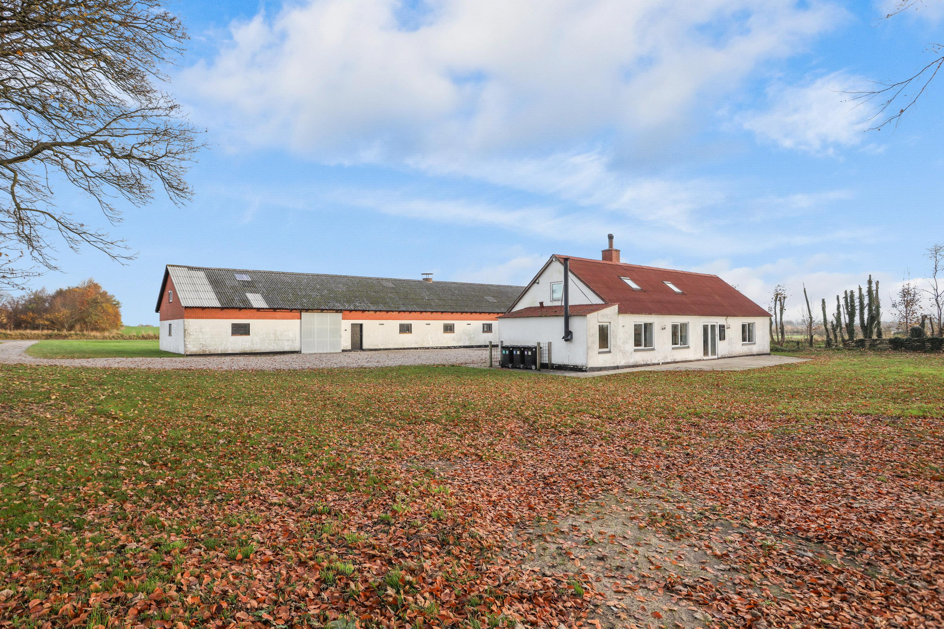 Ejendommen består af en trelænget gård med et stuehus på 153 kvadratmeter, der byder på et godt lysindfald fra de mange vinduer. Stuehuset er lyst og indbydende, men giver gode muligheder for at sætte dit eget præg og modernisere boligen, så den passer til dine behov.